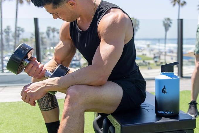 HYDRO CELL Stainless Steel Insulated Water Bottle with Straw - For Cold & Hot Drinks - Metal Vacuum Flask with Screw Cap and Modern Leakproof Sport Thermos for Adults (Blue/Black 64oz)