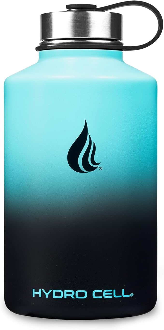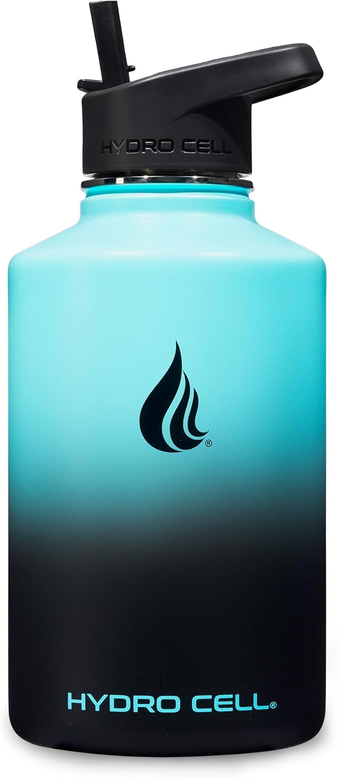 HYDRO CELL Stainless Steel Insulated Water Bottle with Straw - For Cold & Hot Drinks - Metal Vacuum Flask with Screw Cap and Modern Leakproof Sport Thermos for Adults (Teal/Black 64oz)