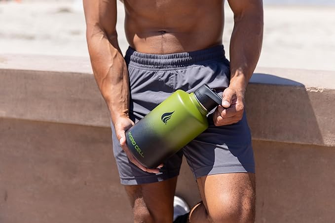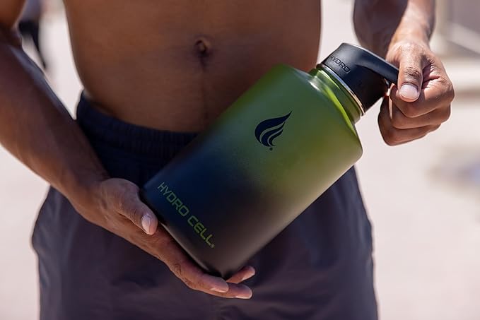 HYDRO CELL Stainless Steel Insulated Water Bottle with Straw - For Cold & Hot Drinks - Metal Vacuum Flask with Screw Cap and Modern Leakproof Sport Thermos for Adults (Army/Black 64oz)