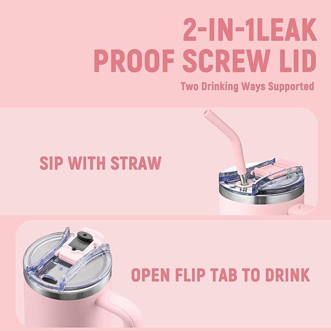 COKTIK 40 oz Tumbler With Handle and Straw Lid, Vacuum Insulated Travel Coffee Mug Stainless Steel Insulated Cup for Beverages, Leak-proof, Cupholder Friendly (Blush)
