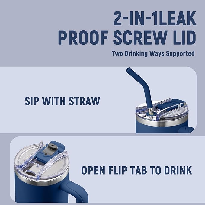 COKTIK 40 oz Tumbler With Handle and Straw Lid, Vacuum Insulated Travel Coffee Mug Stainless Steel Insulated Cup for Beverages, Leak-proof, Cupholder Friendly(Navy)