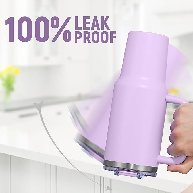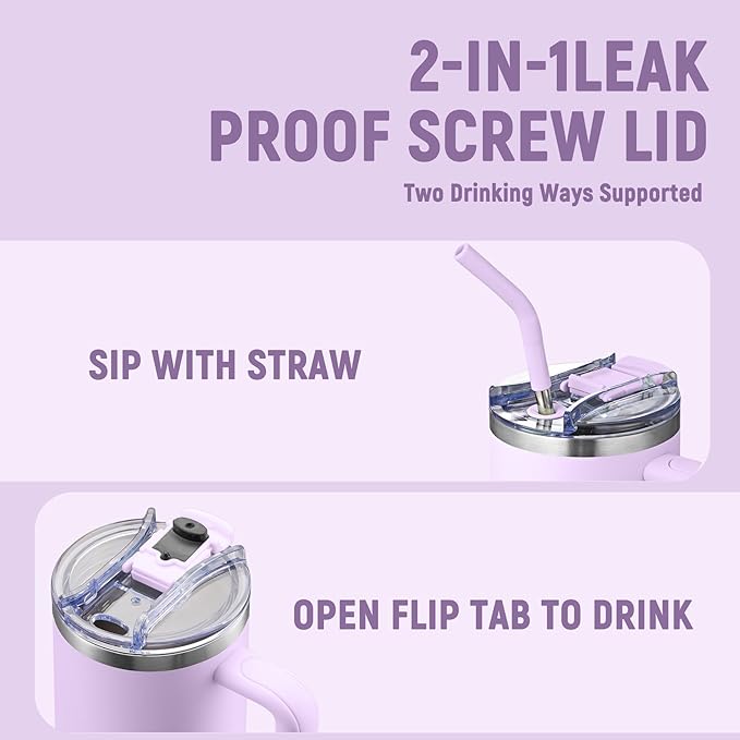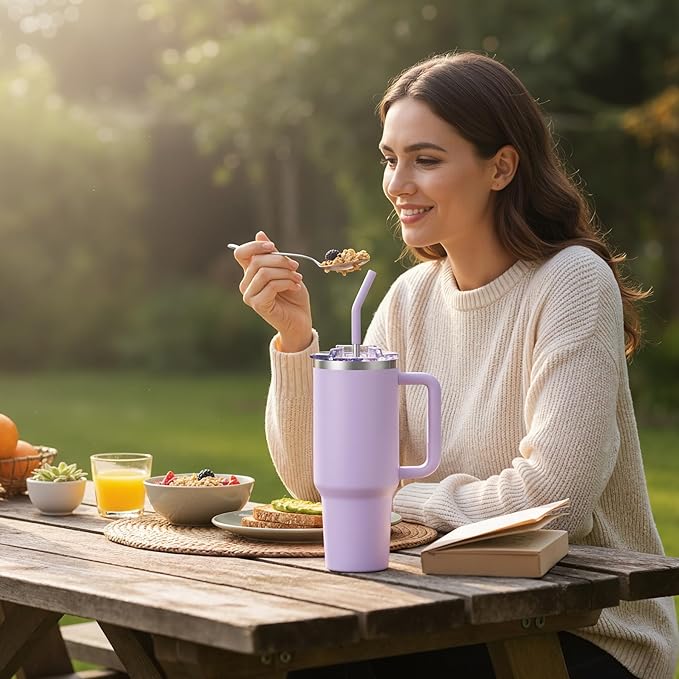 COKTIK 40 oz Tumbler With Handle and Straw Lid, Vacuum Insulated Travel Coffee Mug Stainless Steel Insulated Cup for Beverages, Leak-proof, Cupholder Friendly (Lavender)