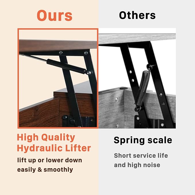 - Upgraded Lifting Top Coffee Table: The tabletop of this coffee table can be easily lifted up and forward to create a workspace when sitting on your sofa. The heavy-duty upgraded metal mechanism allows smooth and easy operation.