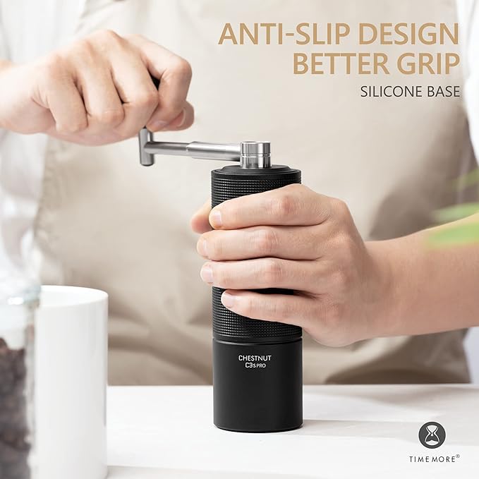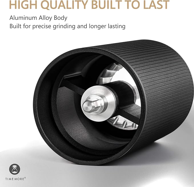 - All-Metal Aluminum Alloy Body: Crafted with an all-metal aluminum alloy body, the TIMEMORE C3S PRO Manual Coffee Grinder offers outstanding durability and longevity. This sturdy construction not only withstands frequent use but also protects the internal components from any potential damage. Additionally, the aluminum alloy body contributes to efficient heat dissipation during grinding sessions, preventing overheating that can compromise the delicate flavors of your coffee beans.