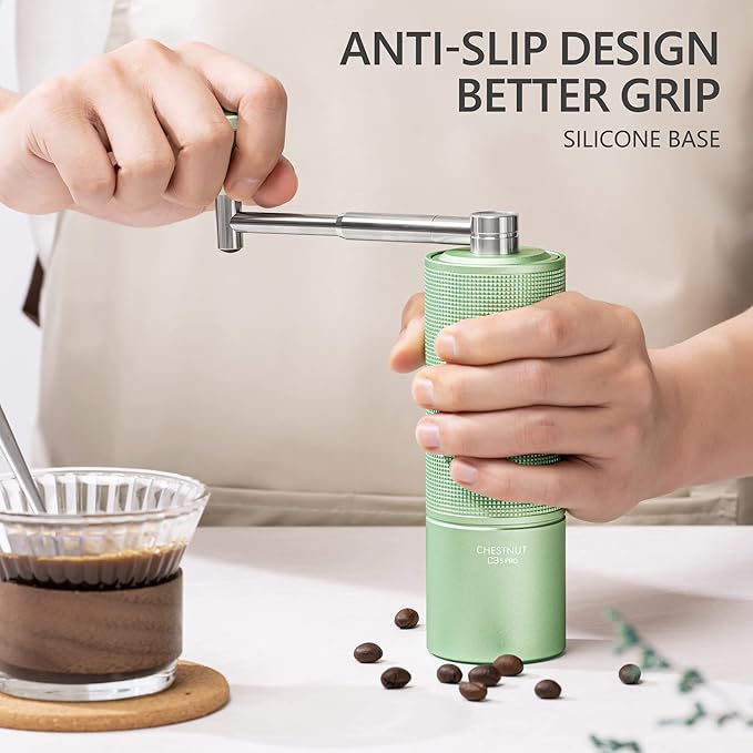 TIMEMORE Manual Coffee Grinder Chestnut C3S PRO, Hand Coffee Grinder with Foldable Handle, Stainless Steel S2C Conical Burr Coffee Grinder, Adjustable Grind Setting for Espresso to French Press, Green