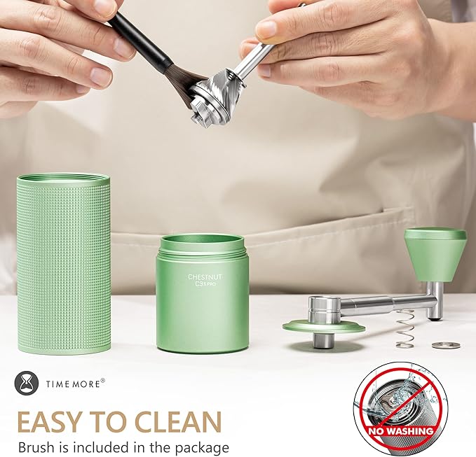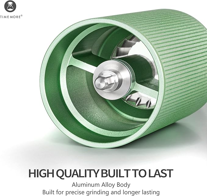 - All-Metal Aluminum Alloy Body: Crafted with an all-metal aluminum alloy body, the TIMEMORE C3S PRO Manual Coffee Grinder offers outstanding durability and longevity. This sturdy construction not only withstands frequent use but also protects the internal components from any potential damage. Additionally, the aluminum alloy body contributes to efficient heat dissipation during grinding sessions, preventing overheating that can compromise the delicate flavors of your coffee beans.