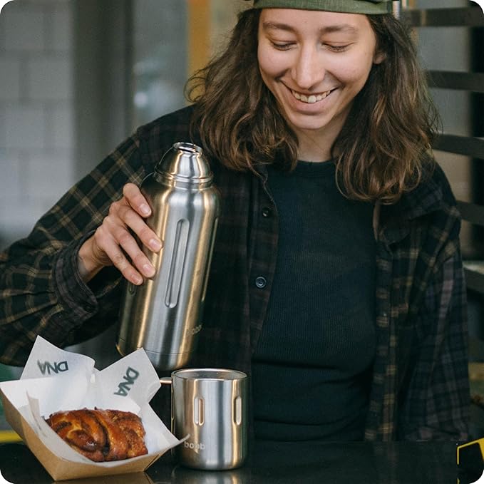 - SAFETY FIRST: Crafted from 18/8 high-grade stainless steel, our coffee thermos for travel ensures your drinks remain free from harmful chemicals. BPA-free, food-grade steel, plastic, and silicone components guarantee a safe drinking experience. Plus, the stopper features an extra metal layer to prevent odor absorption