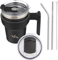 - Designed with a tapered shape and slim-base,the tumbler easily fit in most cup holders. Detachable handle gives versatility to adjust your grip according to your preference or remove it entirely for added flexibility