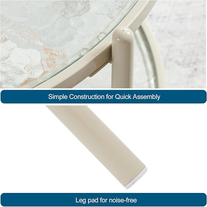 - 【Unique Water-wave Texture】The water-wave texture glass top and metal frame give this coffee table an elegant and modern look that will complement any decor style. The glass top's texture adds a subtle touch of sophistication and prevents fingerprints or smudges from showing up, making it easy to maintain. The circular shape of the metal frame gives the table a unique and eye-catching silhouette.