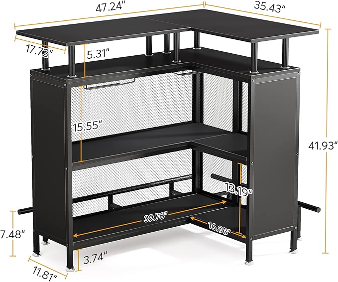 - Compact for Small/Limited Space: This L shaped home bar unit is perfect for those with limited space, as its compact design doesn't sacrifice functionality. It won't take up too much floor space, making it a great addition to apartments or any small space