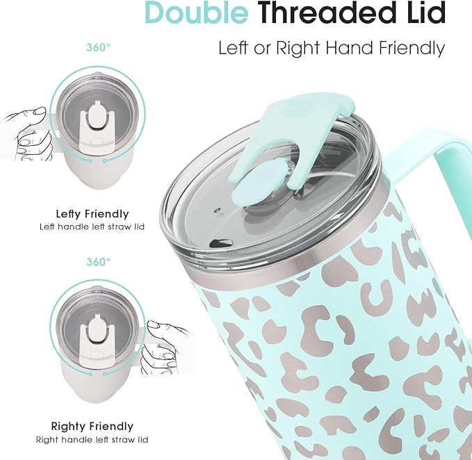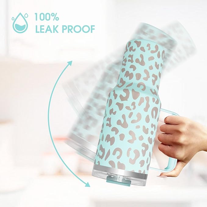 COKTIK 40 oz Tumbler With Handle and Straw Lid, Vacuum Insulated Travel Coffee Mug Stainless Steel Insulated Cup for Beverages, Leak-proof, Cupholder Friendly (Seafoam Leopard)