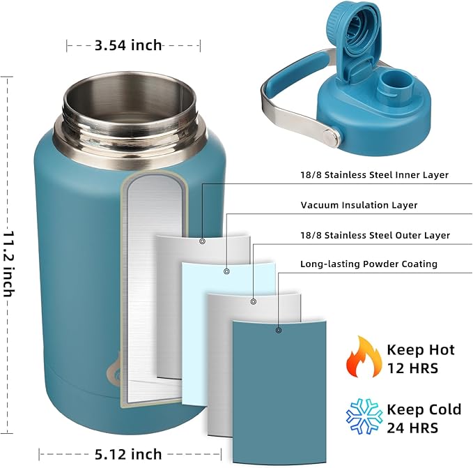 - LARGE CAPACITY & IDEAL PRESENT: This 64 oz large water bottle insulated is designed to accompany you throughout your day. Perfect for traveling, hiking, cycling, camping, fishing, gym and more. With a variety of fashion colors, it is a great present for your loved ones to help them keep hydrated and healthier