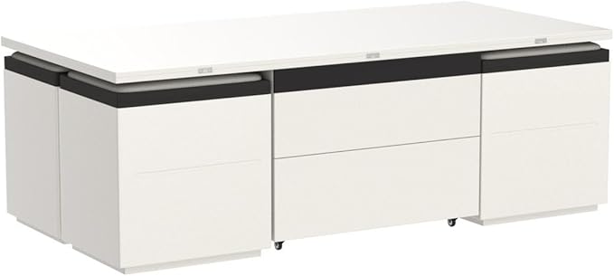 - Equipped with 4 Stools: This coffee table's hidden storage compartment allows you to easily hide items. With an additional 4 extra storage stools, which provide more storage space than a regular coffee table. Both stylish and practical Whether you're enjoying a formal dinner or casual meal, these stools provide the perfect seating solution that complements the coffee table' s design
