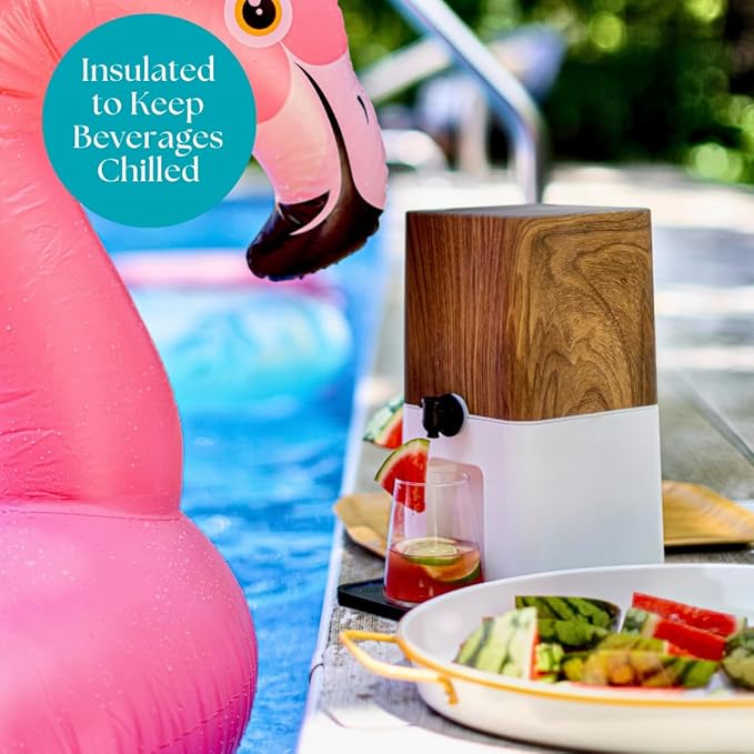 Bebly Box Drink Dispenser and Wine Dispenser | Walnut Design | Insulated - No Sweating - No Watered Down Drinks - Simple - Stylish - Mess Free Beverage Dispenser | Includes Freezable, Reusable 3L Bag