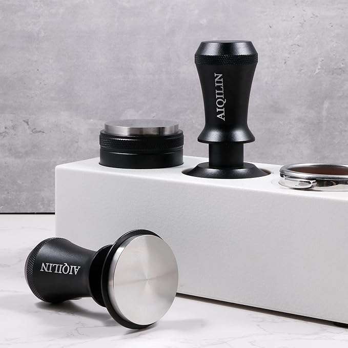 Espresso Tamper, Constant 30lb Coffee Tamper with double Calibrated Spring Loaded, Stainless Steel double spring loaded Coffee Tamper Fits for All Portafilters- Flat Base (58mm, BLACK)