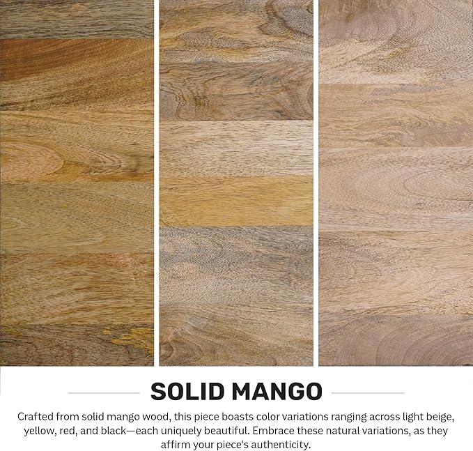 - Natural Variations: Crafted from solid mango wood, each piece features unique grain, color, and texture variations due to its natural origins. Expect these distinctions, which make your furniture one-of-a-kind.