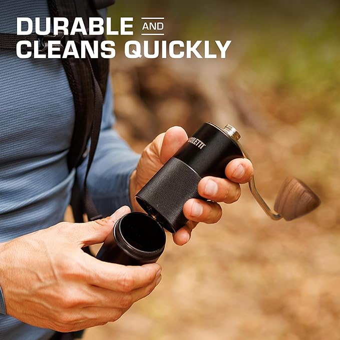 - PREMIUM MANUAL COFFEE GRINDER – Camping’s Best Hand Coffee Grinder: Top class functionality with a smooth as butter grind action. Easy-to-use control dial lets you select the precise coarseness your brew needs. Perfect for espresso, French press, or percolator—no batteries, no noise, just precision