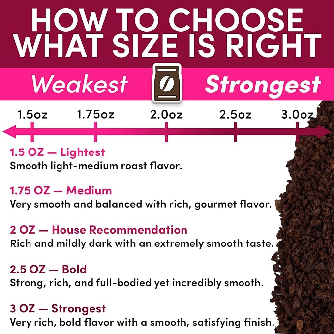 - STRONGER 2.5oz PACKETS – PERFECT FOR FULL-BODIED POTS - Each pouch is a 2.5oz portion designed for a 12-cup drip coffee maker, ideal for customers who like a bolder, richer pot. No scooping, no measuring—just open, pour, and brew.