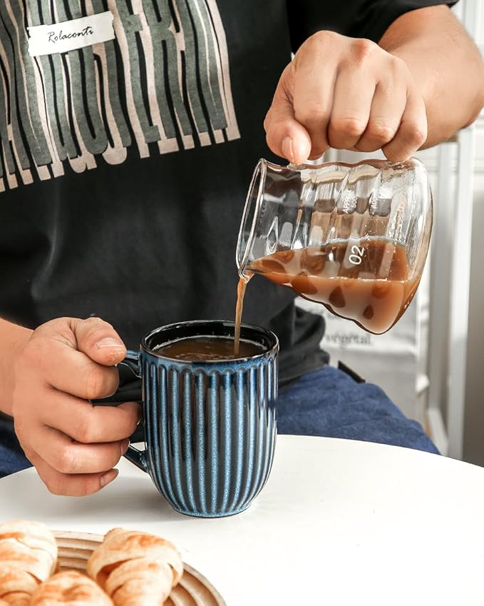 - Exquisite Ribbed Design: Elevate your coffee experience with these stunning mugs, featuring a vertical striped embossed texture for added elegance and uniqueness. The artistic design feels wonderful in hand and makes a captivating presentation on your table