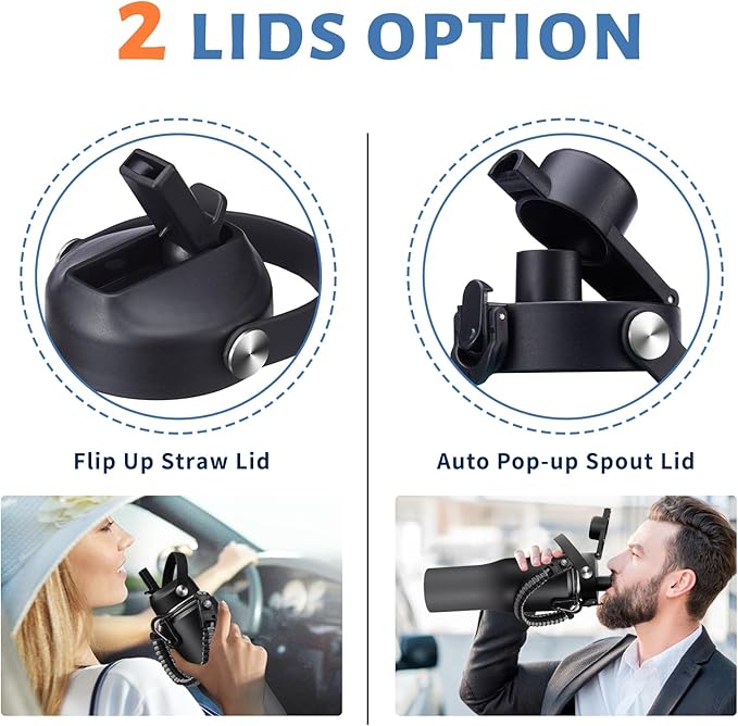 - LEAK-PROOF STRAW LID & AUTO SPOUT LID: This stainless steel water cup with straw and chug lid, both BPA-free, leak-proof and one-hand conctorl design, great car must have things!