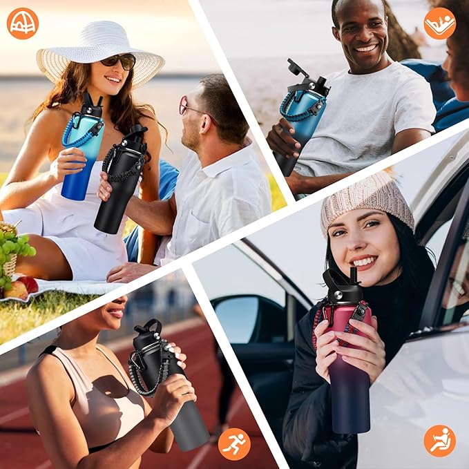 - PARACORD HANDLE & STRAP CARRIER BAG: Free your hands with the colorful paracord handle or adjustable shoulder strap. Compact compass, whistle, handy carabiner make this 32 oz insulated water bottle an ideal kit for expeditions in the wild.