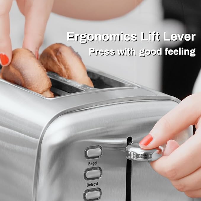 - HUMANITY DESIGN - An ergonomic lift lever to press with good feeling; Under-base cord storage keeps tidiness of the countertop in your kitchen; Non-slip base stabilizes the body of the stainless toaster.