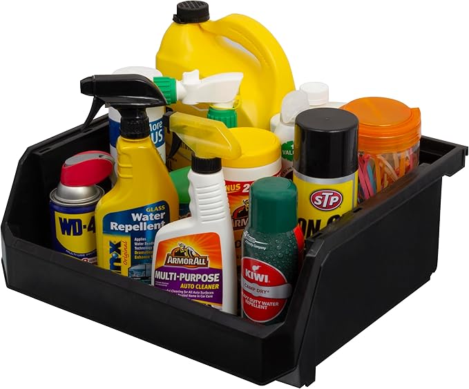 - ORGANIZERS AND STORAGE: These durable storage bins are great for creating a clean and organized garage, shed, barn, cabinet, closet, or office and ideal for tools, cleaning or home repair products, gardening supplies, spray cans, and more