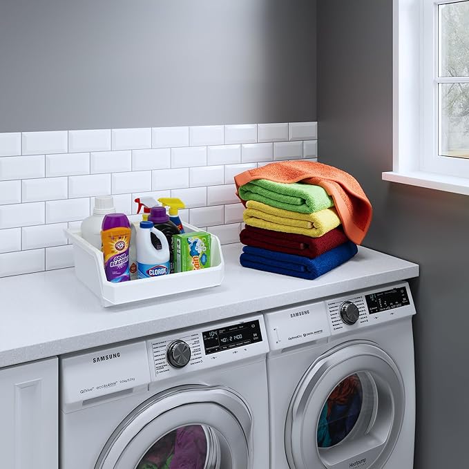 - EASY ACCESS STORAGE BINS: The open front design of our plastic storage containers keeps items within reach, perfect for storing frequently used items in craft rooms, laundry/utility rooms, bedrooms, bathrooms, kitchens, offices, garages, and playrooms
