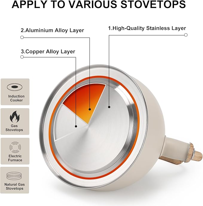- ✅【Apply to Various Stovetops】Applicable for all kinds of stove top such as induction cooker, electric furnace, gas and natural gas stovetops. please use a low or medium fire to heat the kettle to prevent the flame from burning the outer coating directly.