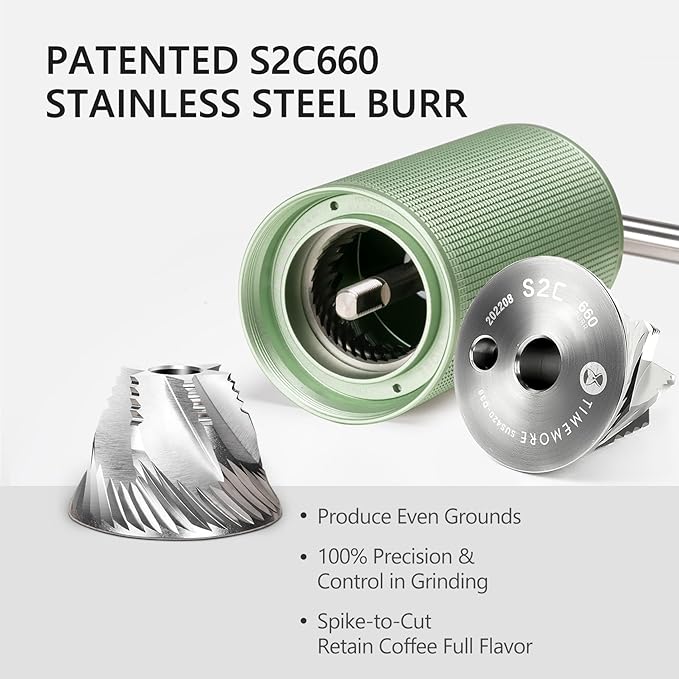 - [ What is C3 ESP Pro? Special Design For Espresso ]Equipped with patented S2C660 stainless steel burrs with higher precision and efficiency. C3 ESP Pro hand coffee grinder provides more precise grinding adjustment, minor adjustment of 0.0233mm per click allows you to easily achieve the perfect coarseness for your preferred fine to coarse. From French press to espresso coffee, TIMEMORE has you covered