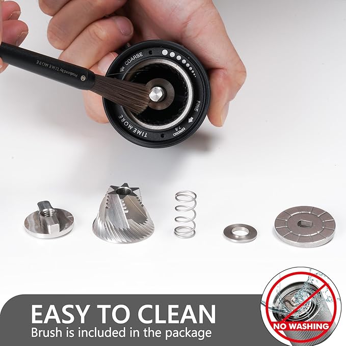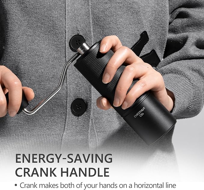 - [ C3 Upgraded to C3S Full Metal Aluminum Body ] Crafted with an all-metal aluminum alloy body, the TIMEMORE C3S Pro manual coffee grinder offers outstanding durability and longevity. This sturdy construction not only withstands frequent use but also protects the internal components from any potential damage. Additionally, the aluminum alloy body contributes to efficient heat dissipation during grinding sessions, preventing overheating that can compromise the delicate flavors of your coffee beans