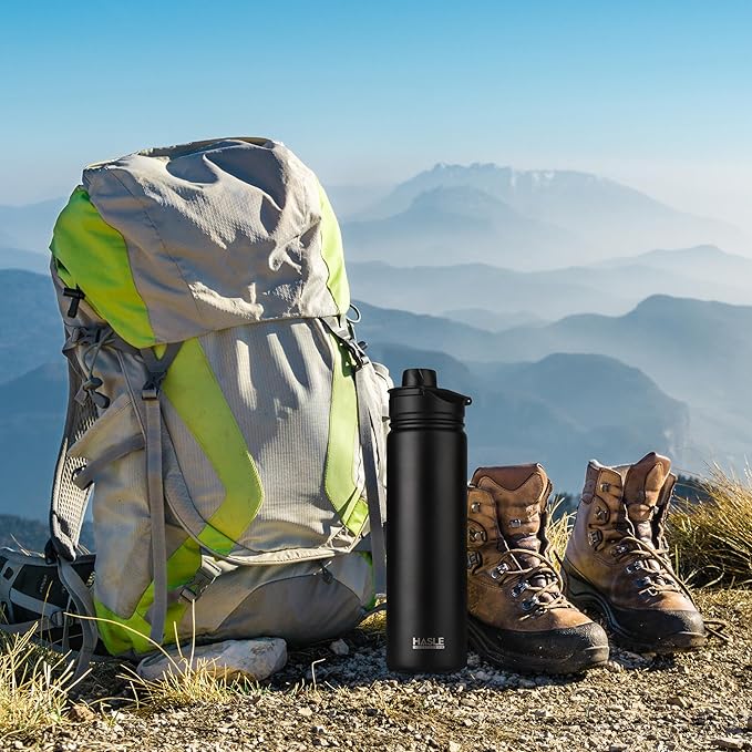 HASLE OUTFITTERS Insulated Water Bottle 22 oz Double Wall Stainless Steel Water Bottle Wide Mouth with Straw Lid & Spout Lid Keeps Cold or Hot(Black,4)