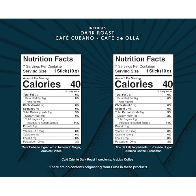- [Flavorful Oriente Instant Coffee Variety Pack]: Oriente Coffee Variety Pack combines three of our most popular instant coffee packets. Enjoy Bold Cafe Oriente, Sweetened Espresso Cafe Cubano, and Cinnamon Cafe De Olla.