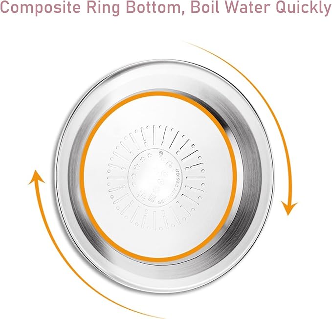 - 【Fast Heating】Ring-shaped energy-gathering composite pot bottom;the pot bottom is concave and widened, which is stable in placement and heated evenly and quickly;Applicable to multiple stoves.
