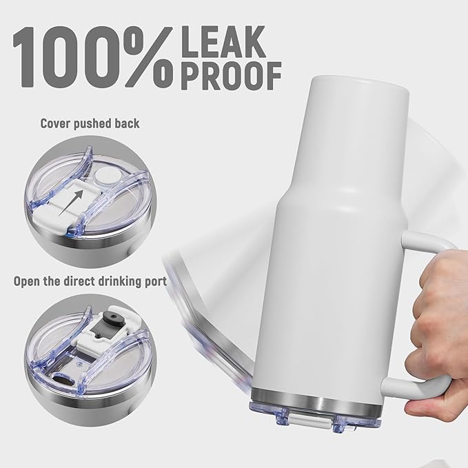40 oz Tumbler with Handle and Straw Lid,Insulated Reusable Stainless Steel Water Bottle Travel Mug,Cupholder Friendly Double Wall Vacuum Sealed Cup (Cold White)