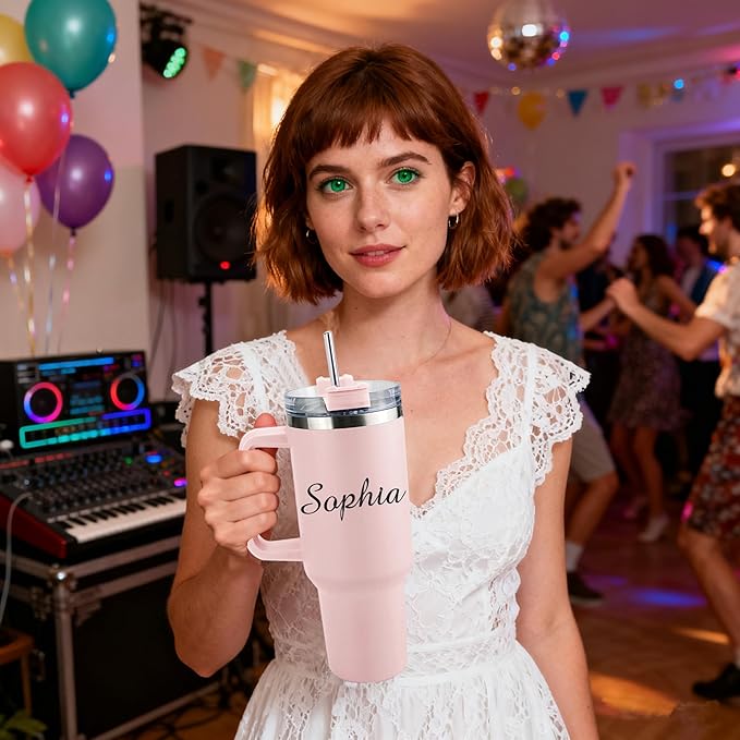 - Personalized Gifts for Family or Friends - If you are looking for birthday or Christmas gift, don't miss this 40 oz tumbler with handle. This insulated coffee cup for sports, travel, driving and more.Personalized tumblers will surprise your friends or family
