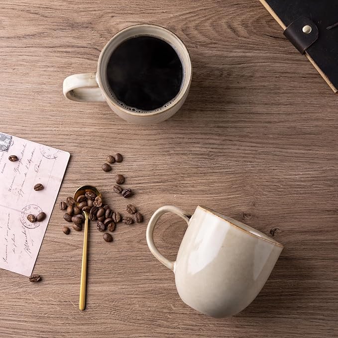 - EASY TO CLEAN & USE: These mugs are dishwasher and microwave safe, making them a convenient choice for busy households. The shiny glaze on the inside of each mug also helps prevent coffee stains from sticking, so you can enjoy your drink without any hassle.