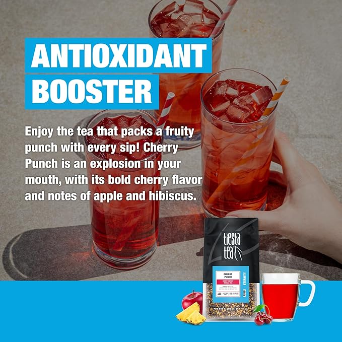 - CHERRY PUNCH FRUITY BLISS: Indulge in a burst of fruity delight with Cherry Punch Herbal Tea. With its bold cherry flavor complemented by delightful hints of apple and hibiscus, every sip is an explosion of taste in your mouth. Whether you prefer it hot or iced, savor the essence of summer with each delightful sip.