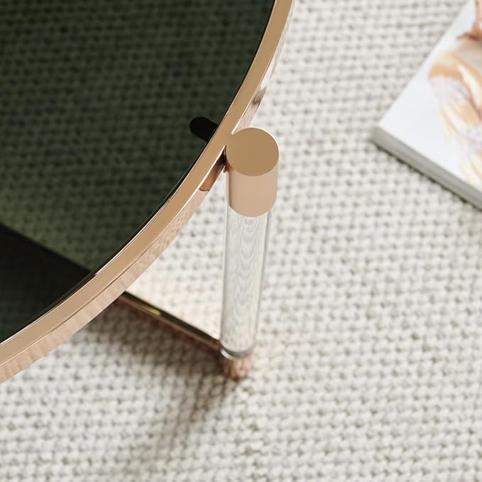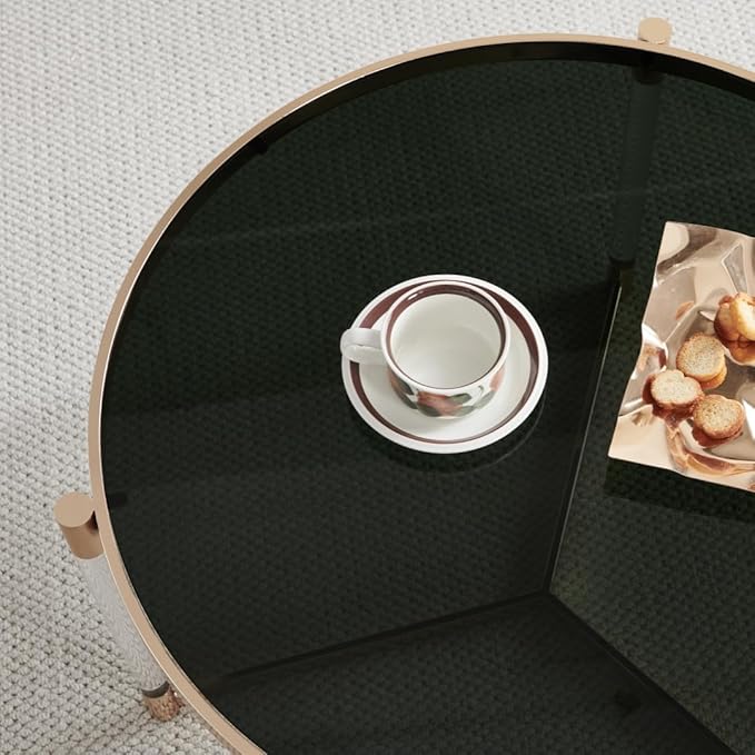 - ✓Design & Style: This coffee table features a striking circular design with a single-layer glass top, creating a sleek and modern look. The acrylic table legs provide a sense of suspension, giving it a contemporary feel. Enhanced with a golden metal frame and a tripod-style base at the bottom, it exudes elegance and artistic charm, making it a perfect addition to any space.