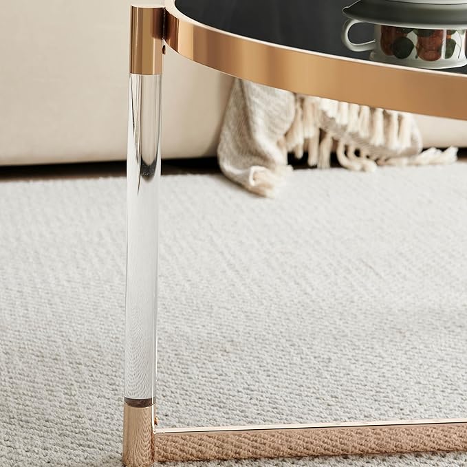 AGV LIGHTING 202303GL-BK Glass Coffee Table, Modern Design, Single Layer GlassTop, Perfect for Living Space, D31.5 x H17, Black Glass Top, Transparent Acrylic Leg & Shiny Gold Finish Metal Frame…