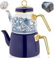 - MATERIAL: Made from sturdy enamel metal and this enamel tea kettle pot teapot set for stovetop is ideal for party birthday and gift for women wedding housewarming