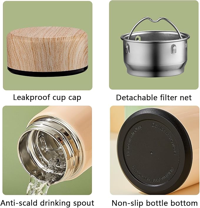 - 【EASY TO CLEAN】The inside of the lid is embedded with PP leak-proof silicone ring. Simple structure, washable with a spout removed,The cup mouth is smooth, it will not cut lips, the cup has large diameter, It has detachable filter net, can filter the residue such as tea. The bottom of the cup is made of non-slip material, which is not easy to slip off and is durable.