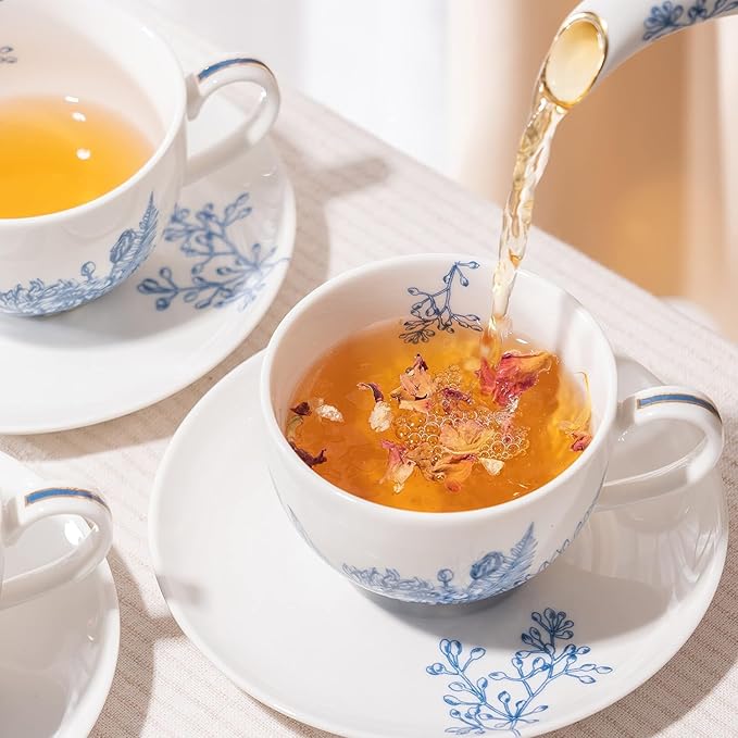 - Design : Our original design features a delicate European-style floral pattern that adds elegance and beauty to any home. The tea cups can be used not only as drinking cups but also as centerpieces or decorative items, adding value to the set