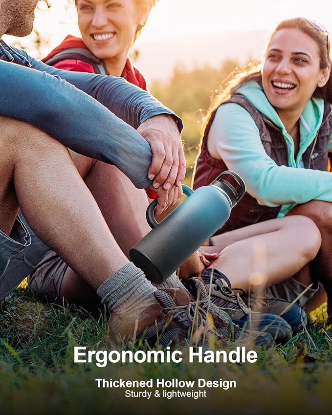 - Ergonomic Handle Design: Engineered with an integrated and ergonomic handle, Trebo 40 oz insulated water bottle is super sturdy and durable. The handle is thickened and hollowed for comfortable grip and easy lifting, so you can take it wherever you go.