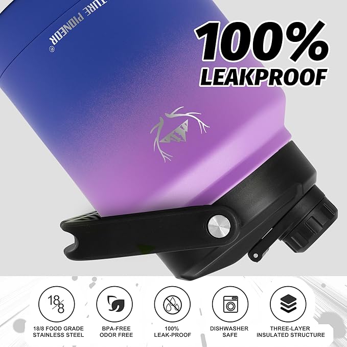 - 【Triple-Layer Vacuum Insulation】 – The insulated gallon water bottle is engineered with triple-wall, vacuum-sealed insulation and made from premium 18/8 food-grade stainless steel. This advanced design locks in temperature, keeping drinks ice-cold for up to 48 hours or steaming hot for up to 24 hours. The no-sweat exterior prevents condensation and protects your hands from heat or frost, making it reliable for outdoor sports, travel, camping, and daily hydration