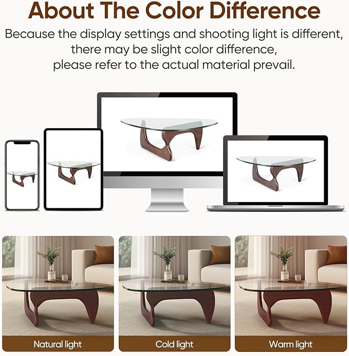 - 【After-sale Service】We do our best to ensure the integrity of the package and present you with an excellent glass accent table. If you need other help, please feel free to contact us. PS: Dark walnut coffee table: Due to different batches, the legs of some coffee tables will be reddish, please understand.