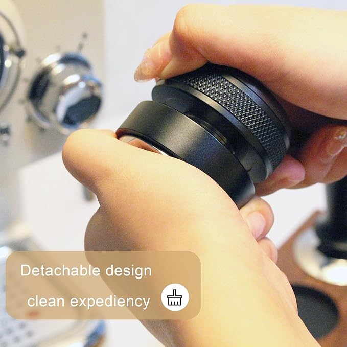- Innovation Design:Coffee distributor adopts an aluminum alloy handle with anti-slip fish scales pattern design, handle structure is comfortable to hold. This design makes the espresso distributor both beautiful and practical. The cover is made of walnut, with unique design and exquisite appearance. Every corner of the coffee distributor has been finely polished, so espresso leveler is smooth and won't hurt your hand