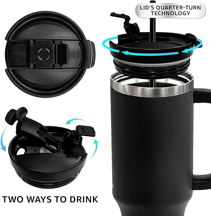 - 💌 TEMPERATURE RETENTION & EXCELLENT LEAKPROOF: Our 40oz tumbler features the vacuum insulation tech that keeps beverage cold for up to 12 hours and hot for up to 6 hours. Therefore, you can enjoy your favorite drinks anytime and anywhere. BPA-free lid with quarter-turn technology, 100% airtight. So, it won't leak even when shaken or accidentally poured.