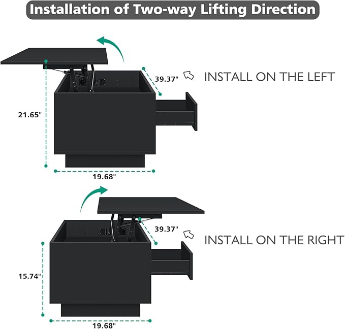 - Strength & Durability : Sized at 37.6"Lx15.75"Wx21.65"H, the lift top table is crafted from premium E1 particleboard, holding up to 200 lbs and promising long-term durability.(Desktop load bearing 60lbs) An easy to clean, water and scratch-resistant high gloss coffee tables adds to its appeal