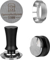 - 51mm Spring-Loaded Tamper - This 51mm espresso tamper is made of stainless steel and aluminum. It has a spring inside so you get the same amount of pressure when tamping your coffee grounds. This helps make your coffee extraction more even. The threaded bottom also helps control the water flow so the grounds get saturated evenly.